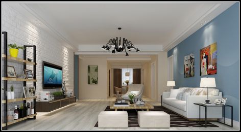 万达广场127平米三居室简欧风格装修效果图风效果图