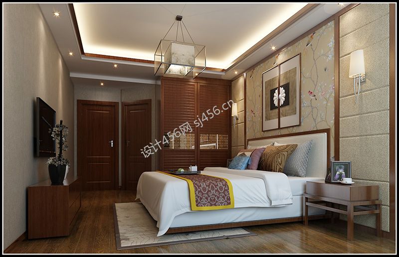 水岸莲华155平米四居室新中式风格主卧装修效果图