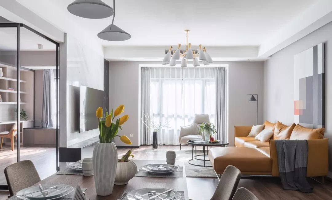 01-18本期济南思慕美学家装饰给大家分享的是一套146平现代装修案例,设计师运用了简单的黑白灰色调,再融合了各种黄色在其中,达到控制节奏变化的目的。在满足业主品质生活的基础上,又注重功能性与实用性的相辅相成,让空间变成美好独特的生活体验。
