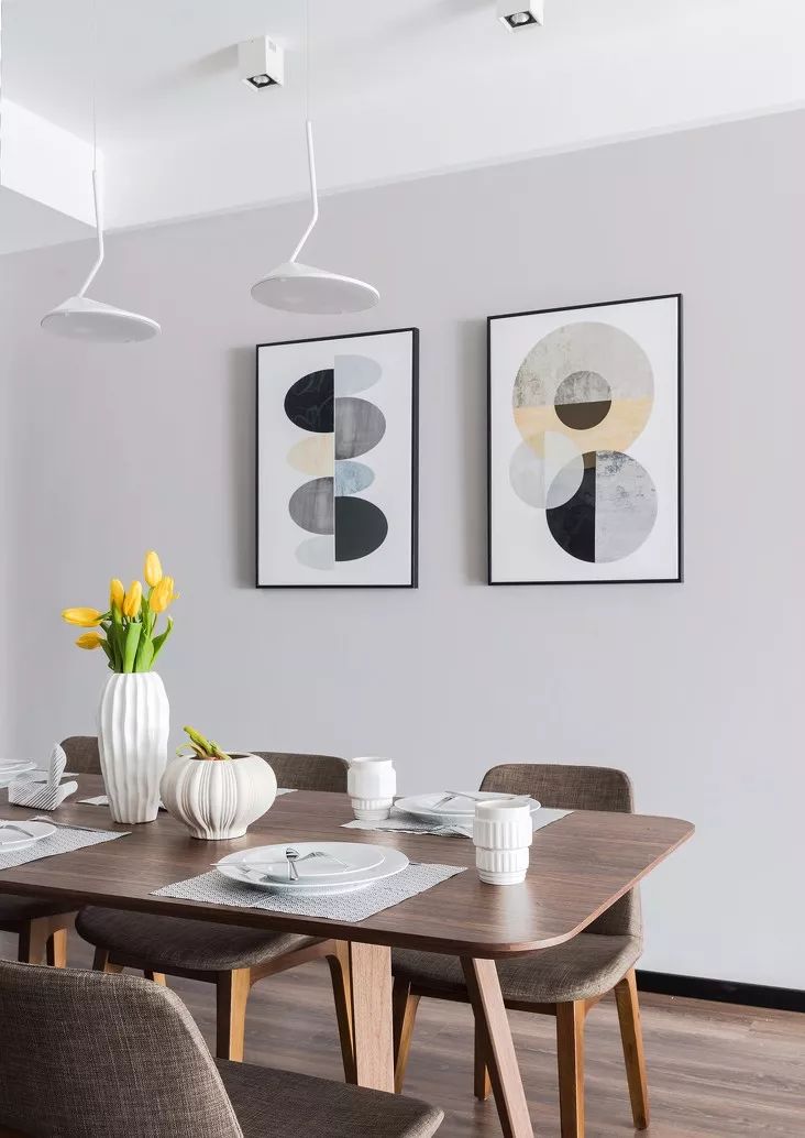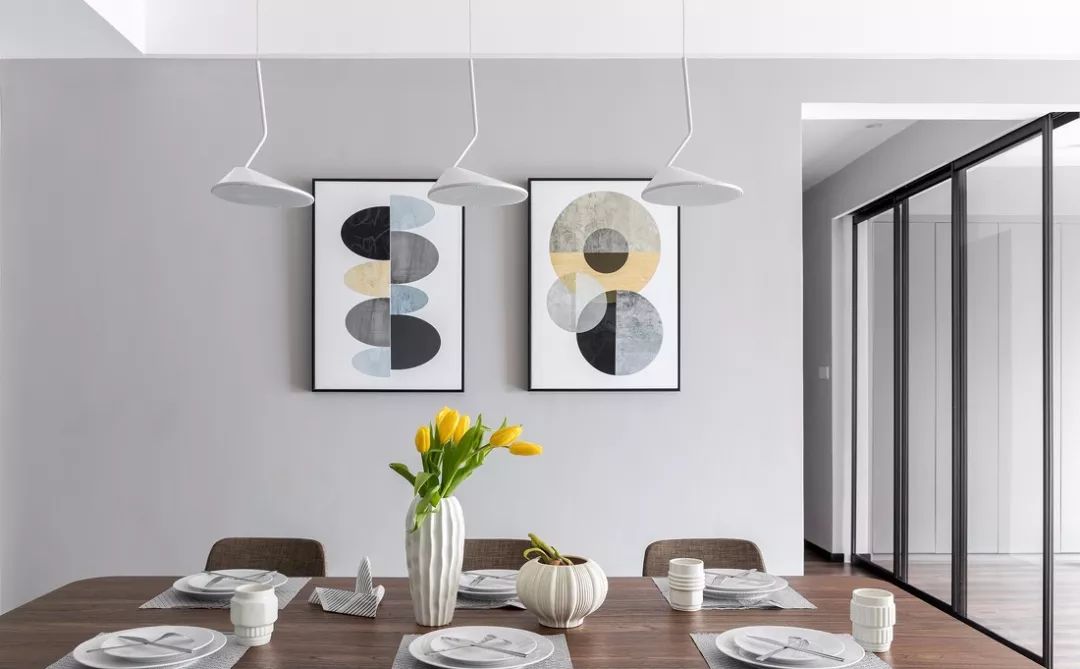 ▲在家具的选择和氛围的营造上,以彰显舒适大气的特质为主,利用家具餐具和挂画,打造了独1无2的餐厅空间。