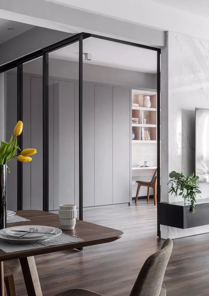 ▲将厚重的墙体改成了通透的玻璃,既实现了空间的视野宽广,又能形成独立私密的书房。