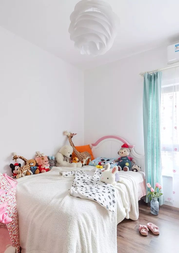 ▲简洁明快的家具,棉麻质地的布料,色彩跳跃的玩偶,恰到好处的搭配在一起。