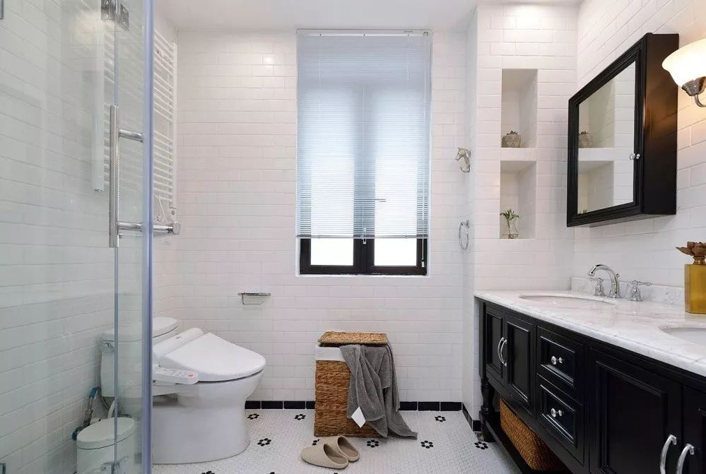 ▲ 卫生间以黑白两色为主调,干净纯粹的墙面搭配宜家风格的纯黑色大浴室柜,洋溢浓郁的北欧气息,实用又美观