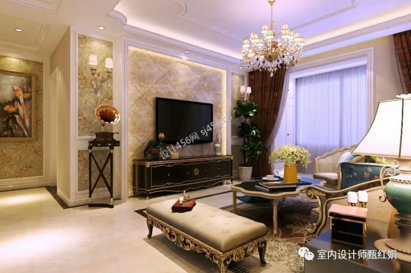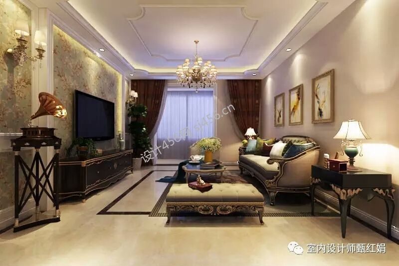 逸城山色123平米三室两厅装饰装修设计案例风效果图