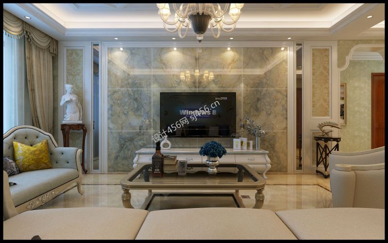 2020简约欧式风格客厅装修图 瓷砖电视墙装修效果图