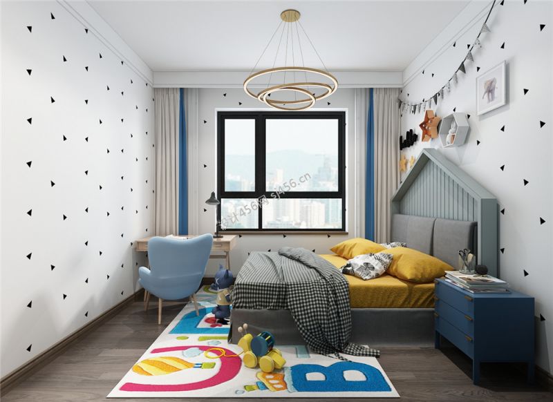 现代北欧风格三居136平家装设计效果图大全风效果图