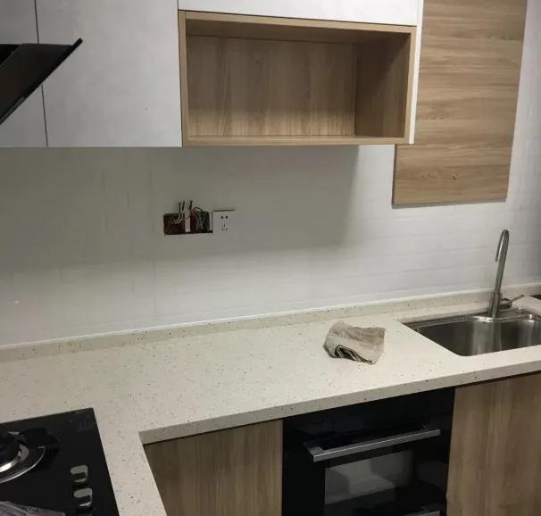 2、不用挡水条。或者可以直接摒弃挡水条,台面与墙面紧密连接,缝隙处用MS防霉胶填补,从根本上达到防霉功效,后期基本不会存在发霉问题。但是对施工要求较高,厨房墙面足够平整,这样才能让橱柜与墙面的缝隙更小。