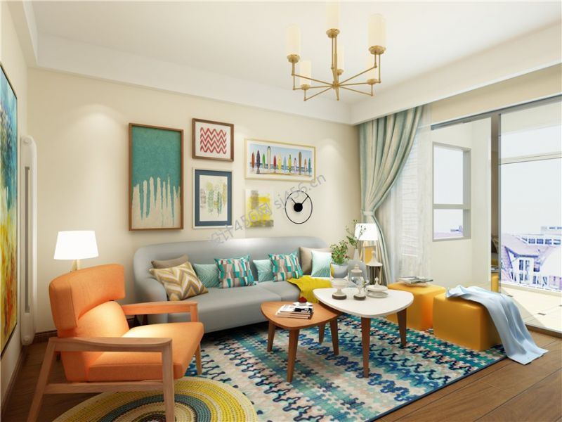 日门建材 水榭蓝湾104平米现代风格三居装修案例