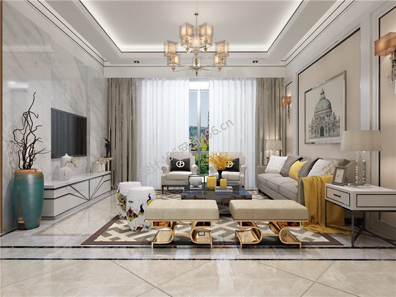 平安龙玺欧式风格136平米三居室装修案例风效果图