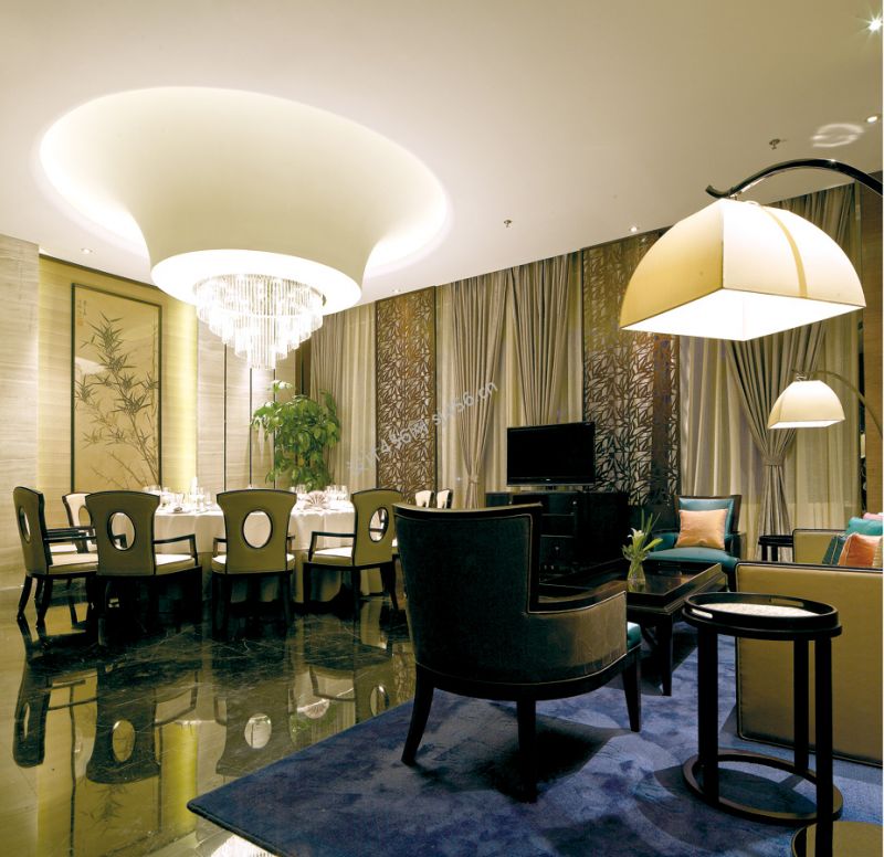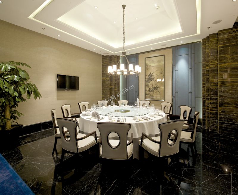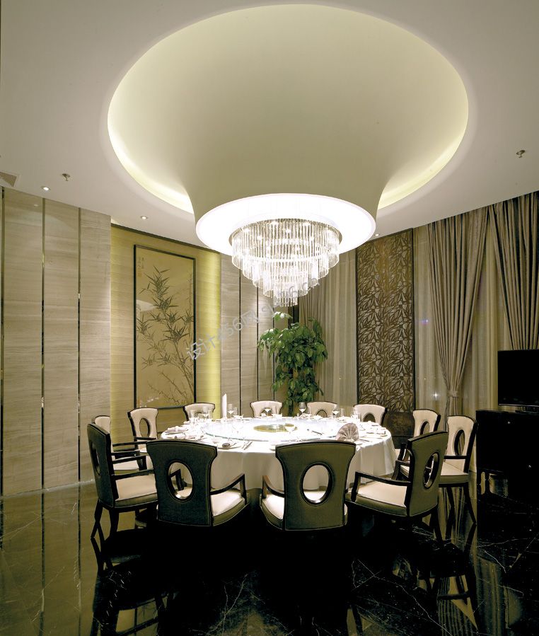别墅新中式风格餐厅石膏板吊顶装修效果图片