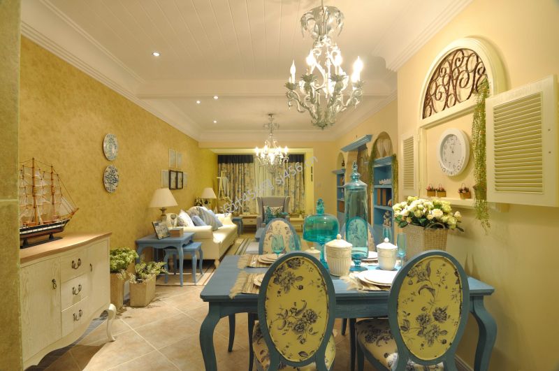 田园地中海风格餐厅背景墙设计装修案例