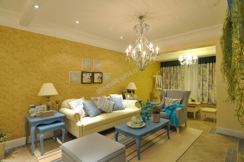 田园地中海风格客厅电视墙造型设计实景图