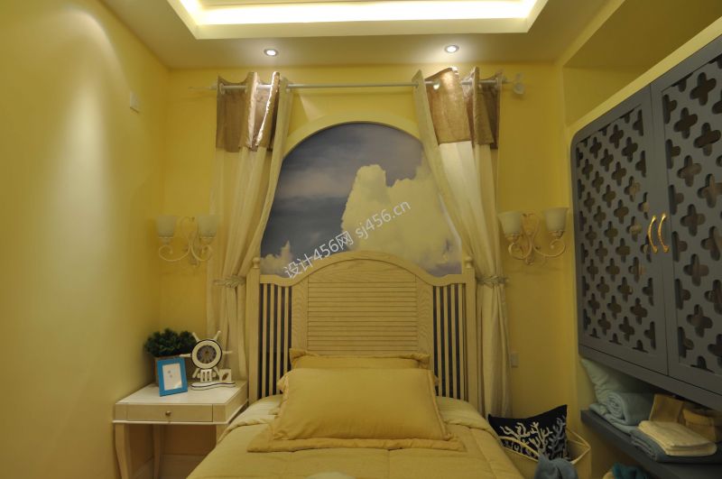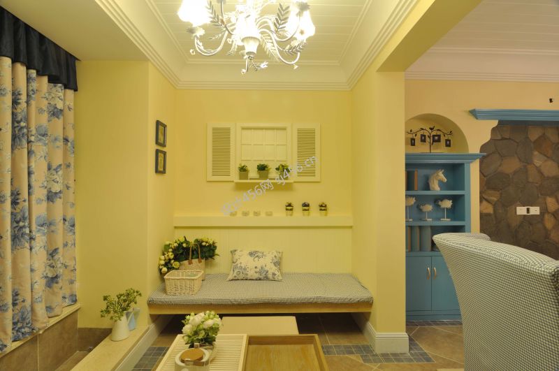 田园地中海风格卧室飘窗窗帘装修效果图