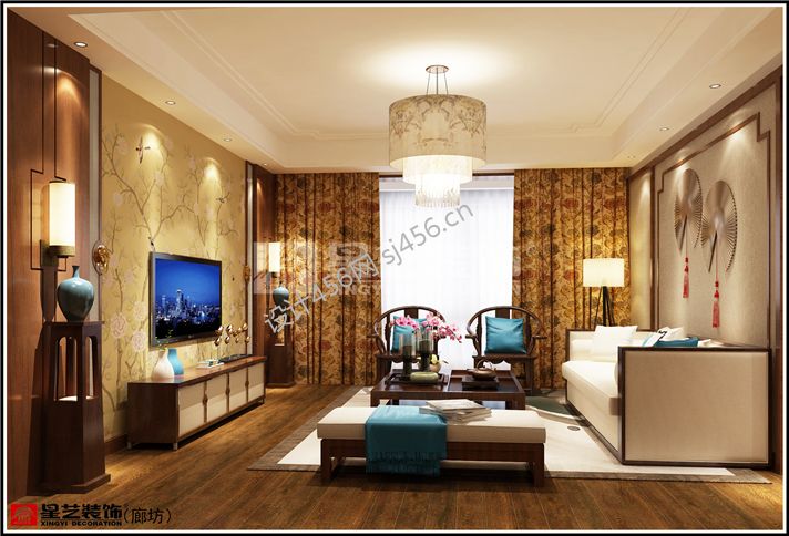 廊坊永清国瑞城320平米新中式风格装修案例风效果图