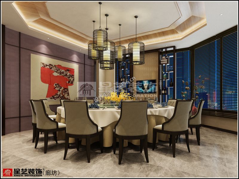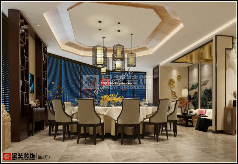廊坊永清国瑞城320平米新中式风格装修案例风效果图