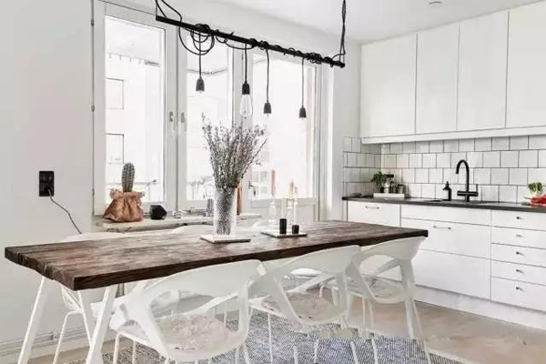 5、极致优雅,虽然说餐厅的空间是比较小的,但是将餐厅布置得更优雅些,能够给人带来较为清爽的感觉。当暖色调的装饰品,与白色餐桌融合在一起之后,烘托出浪漫的情调,而且让整个空间看起来更大。