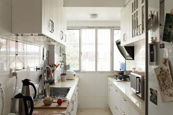 适用户型:厨房偏细长条,户型适中,窗户与门相邻。
