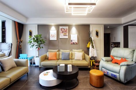 K2狮子城海棠园135平现代简约三居装修案例风效果图