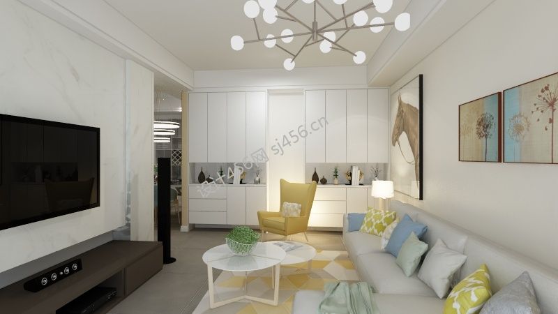 阳光·白鹭洲简约风二居室95平米设计效果图案例风效果图