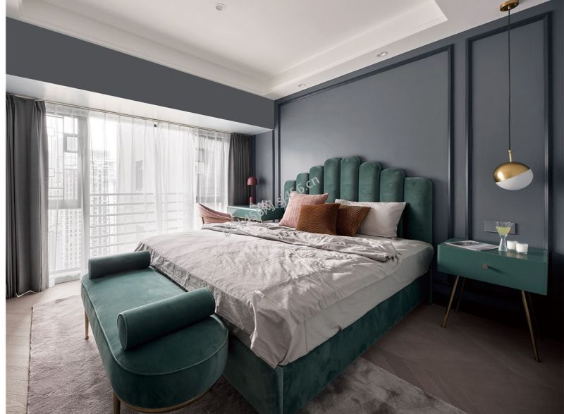 美式风三居室卧室床头软包设计效果图