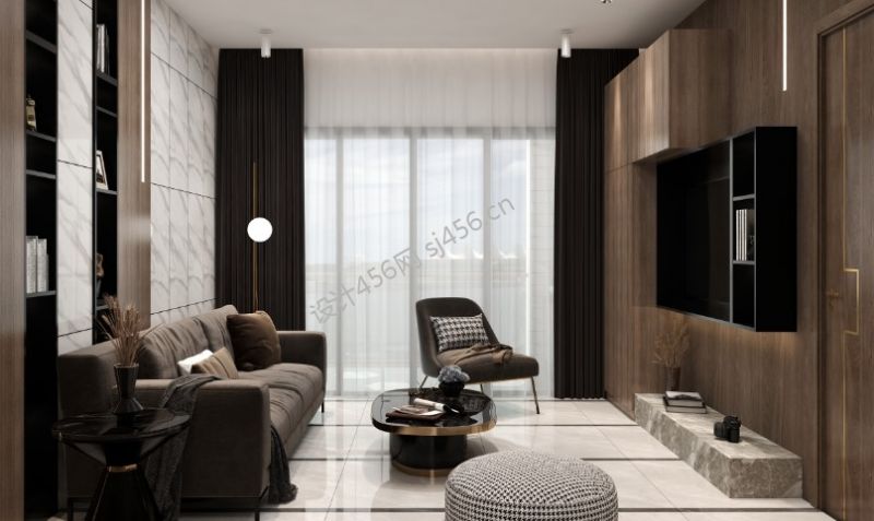 金马国际126平米现代轻奢风格二居室装修案例风效果图