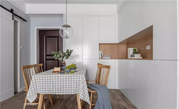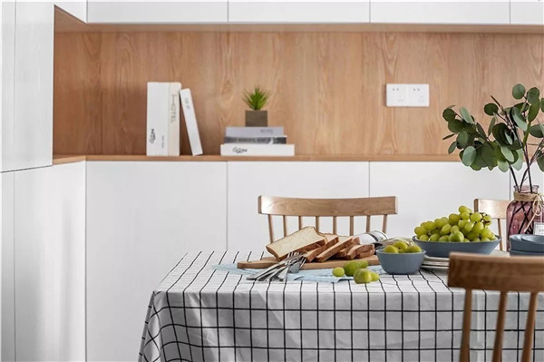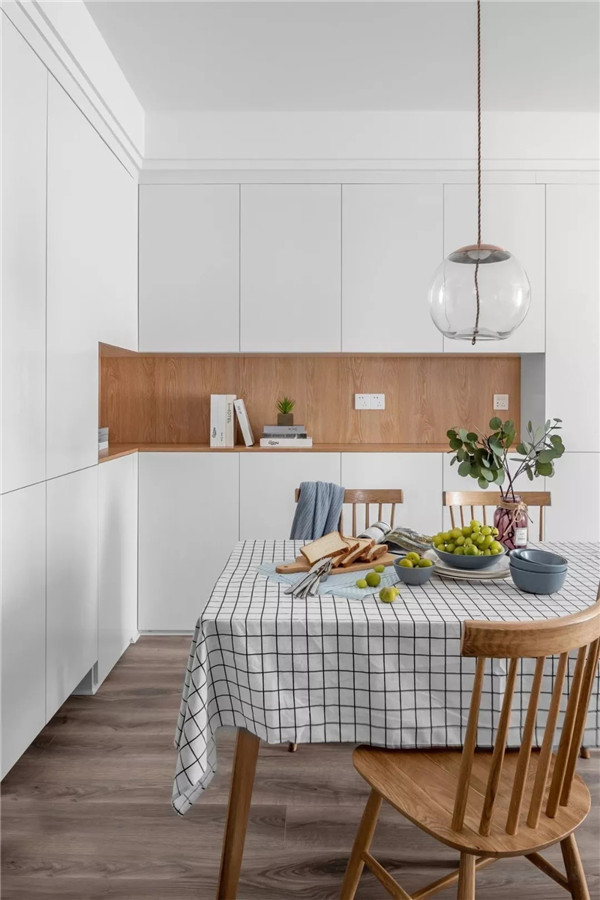 白色的墙面融入原木的元素,浑然天成的色彩搭配,给人一种清新自然的舒适感。