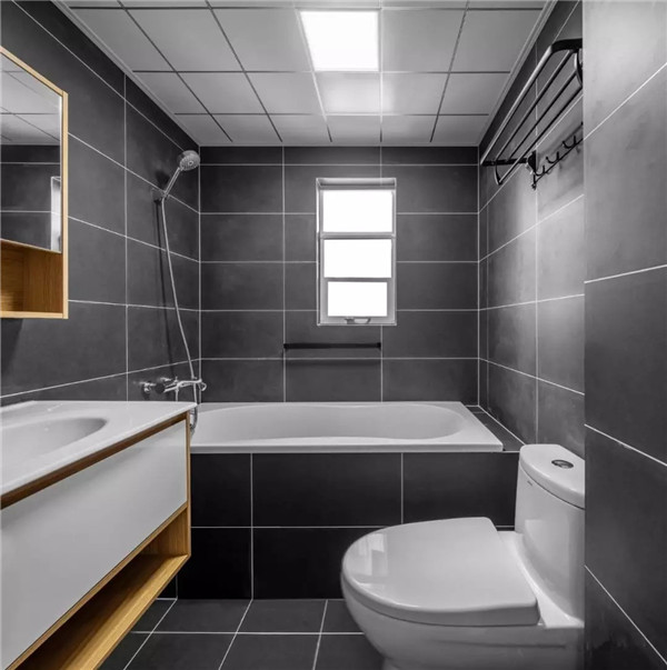 卫生间的色彩使用了大量水泥灰,再用原木朴素的材料去凸显空间原本的特色。偶尔把疲惫的身体浸入到放有满满热意的浴缸里,可以迅速提升幸福感。