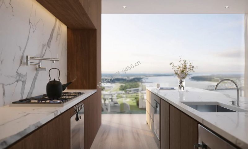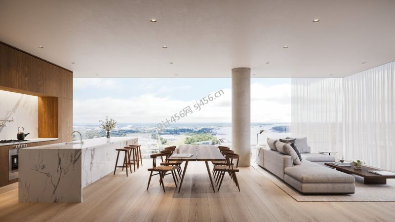 143平米三居室现代简约风厨房餐厅客厅装修案例