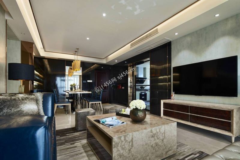 长兴都汇116平米现代轻奢风格三室两厅装修案例风效果图