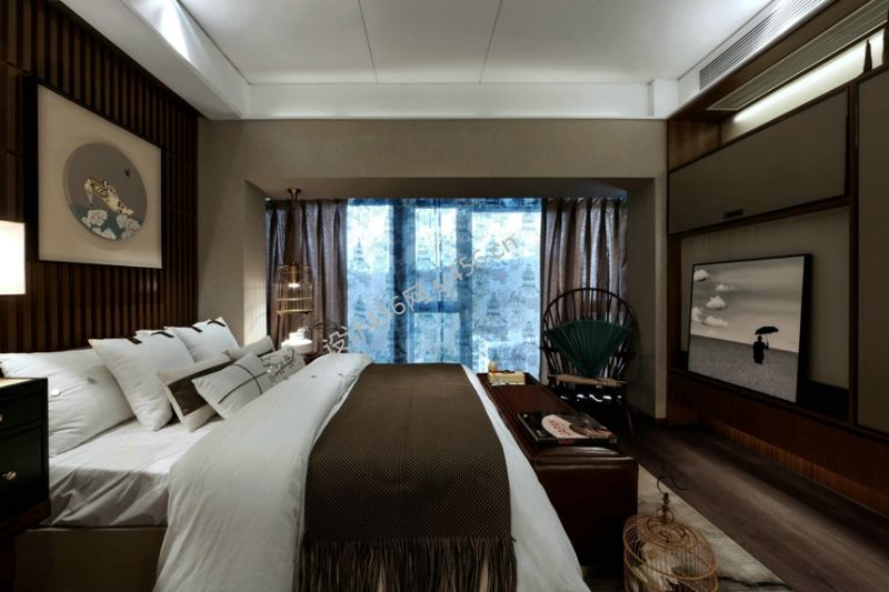 129平米中式风格三居室卧室布置装修效果图