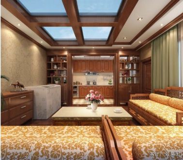 135平米禅意风格三居室客厅吊顶装修案例