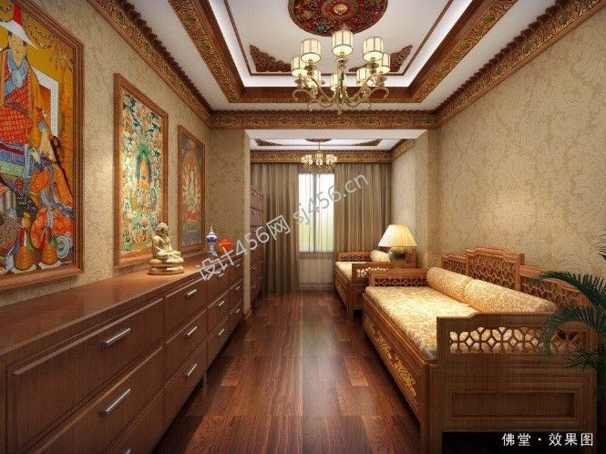 机电小区沉稳藏式风格135平米三居室装修案例风效果图
