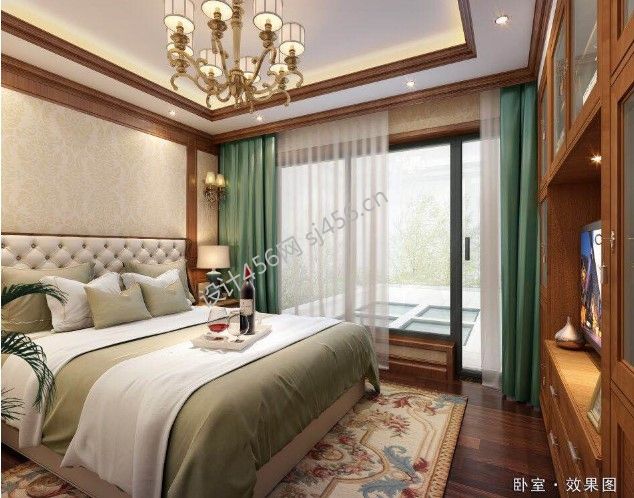 135平米禅意风格三居室卧室落地窗设计图