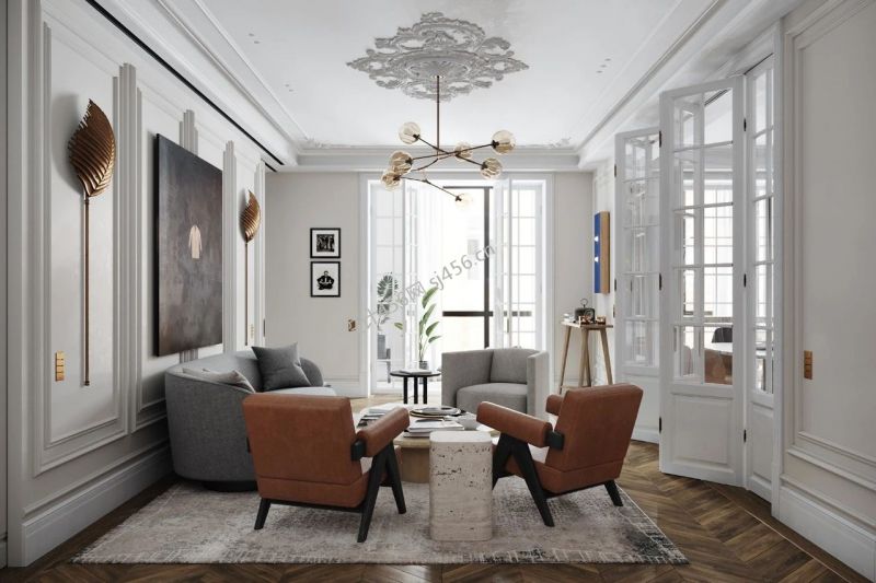 180平米法式风格四居室客厅软装设计装修效果图