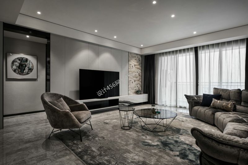 明耀国际110平米现代简约风格三居室装修案例风效果图