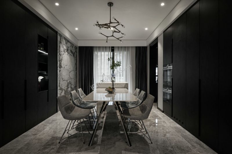 135平米三居室现代简约风格餐厅背景墙装修图片