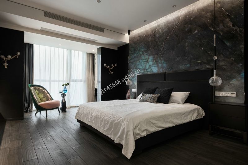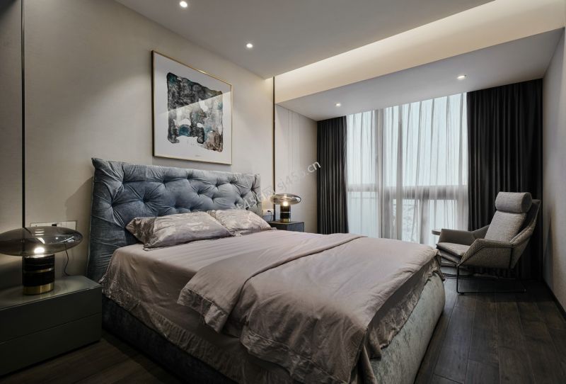 135平米现代简约风格三居室卧室背景墙设计案例