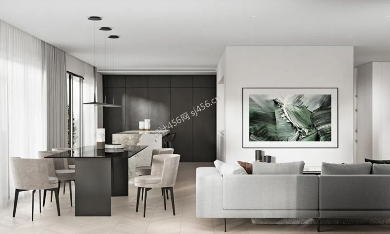 明耀国际110平米现代简约风格三居室装修案例风效果图