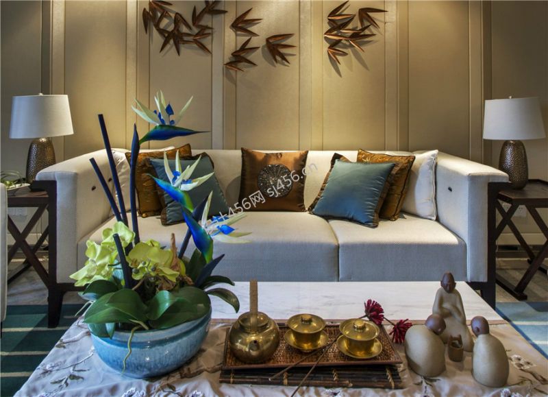 长兴都汇130㎡新中式风格三居室装修案例风效果图