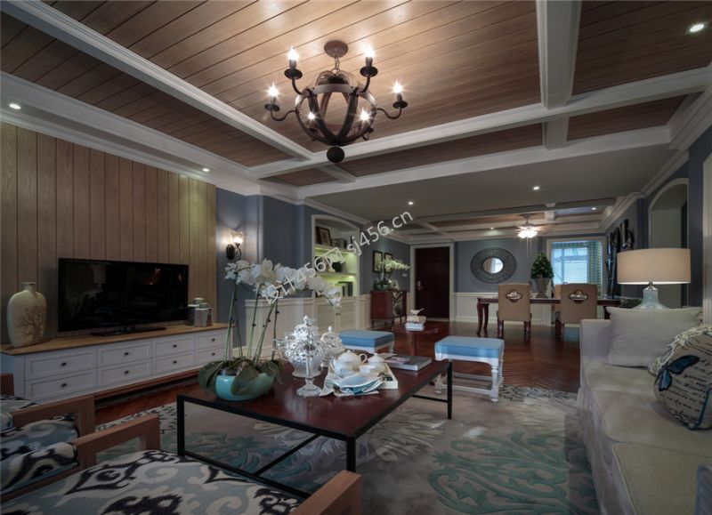 130㎡地中海风格三居室客厅天花板设计装修案例