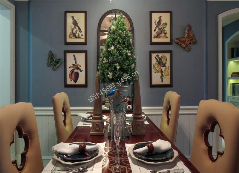 天知世纪城130㎡地中海风格三居室装修案例风效果图