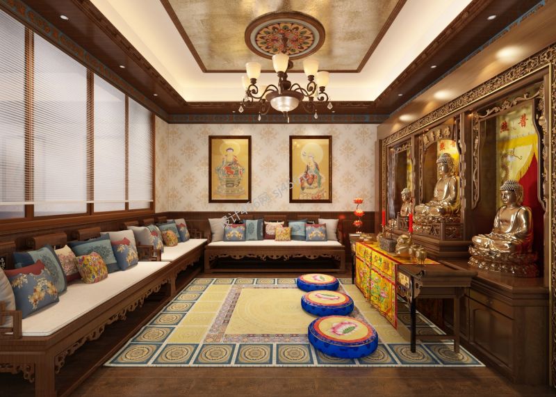 1300平米沉稳风格三居室佛堂设计装修案例图片