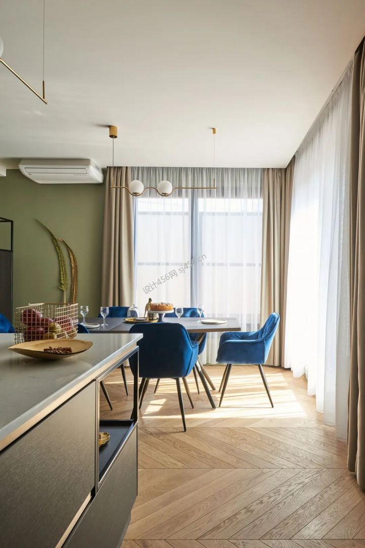 100平米三居室现代轻奢风格餐厅窗帘设计效果图