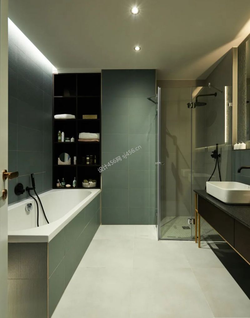 100平米三居室现代轻奢风格卫生间浴缸设计案例