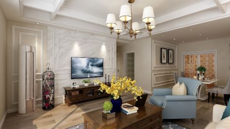纳金城祥苑107平米美式田园四居室装修案例风效果图