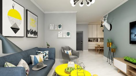 长兴都汇70平米北欧风格二居室装修案例风效果图