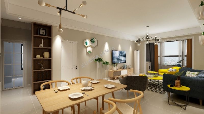 人和鑫座118平米北欧风格三居室装修案例风效果图