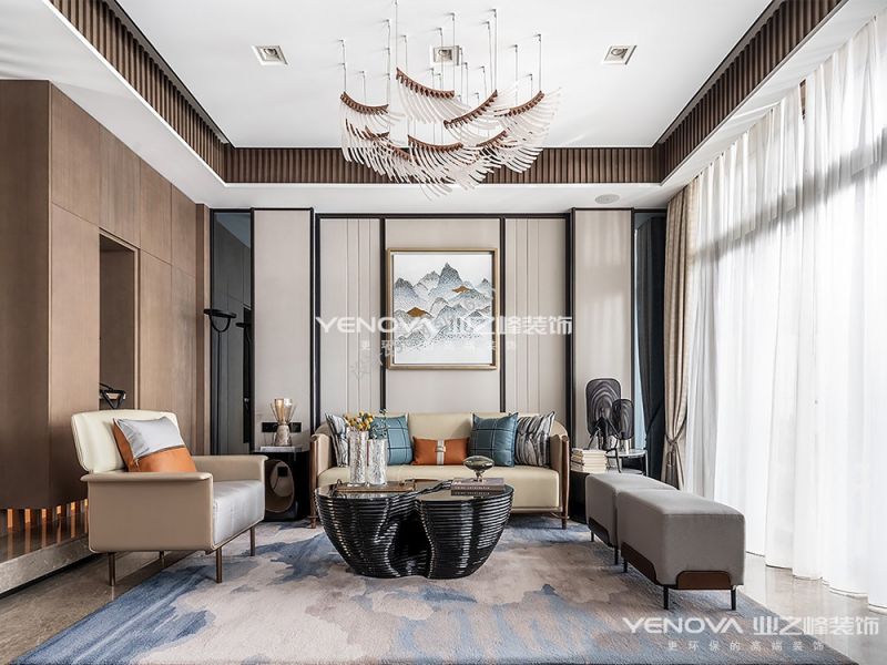 吉旭生态家园310㎡新中式风格别墅装修案例风效果图