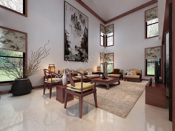 201平中式风格客厅装修挂画效果图