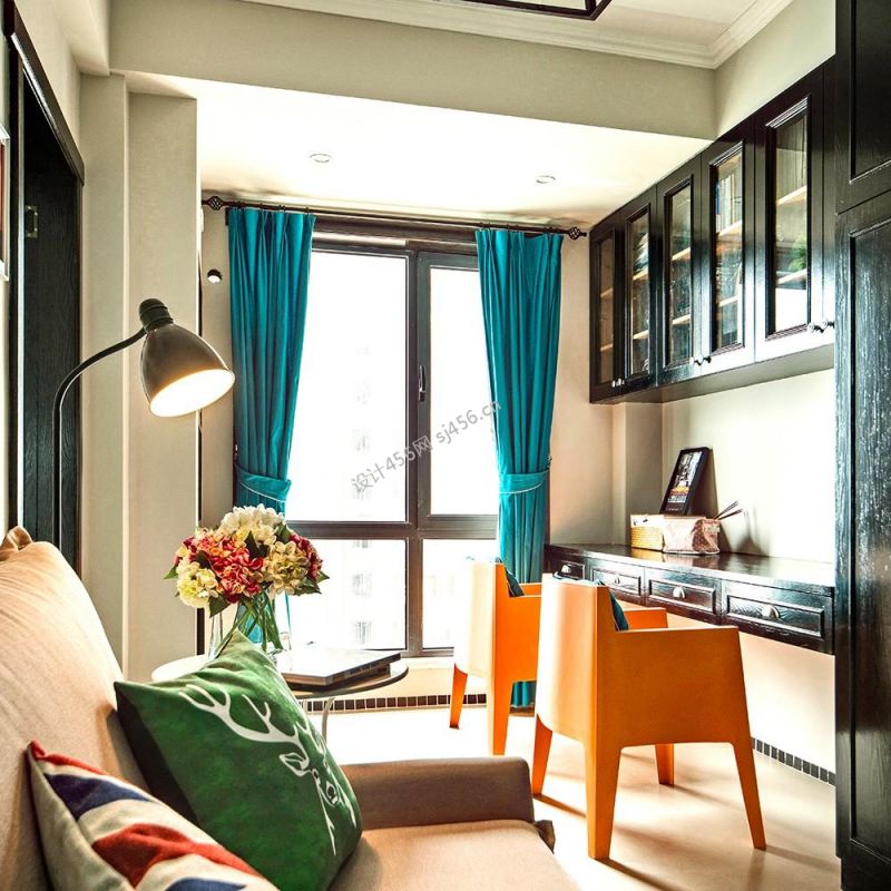 佳乐江屿城100平美式风格三居室装修案例风效果图
